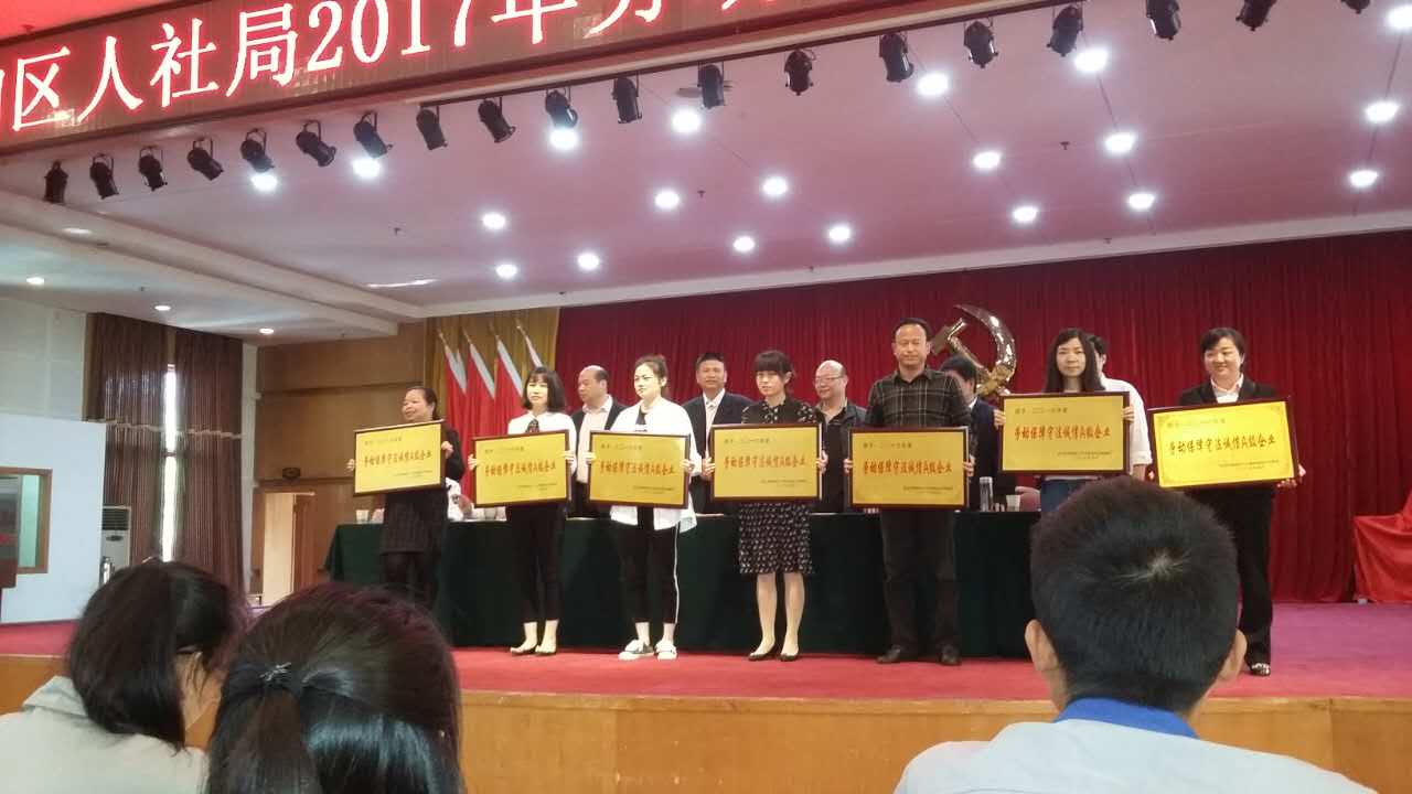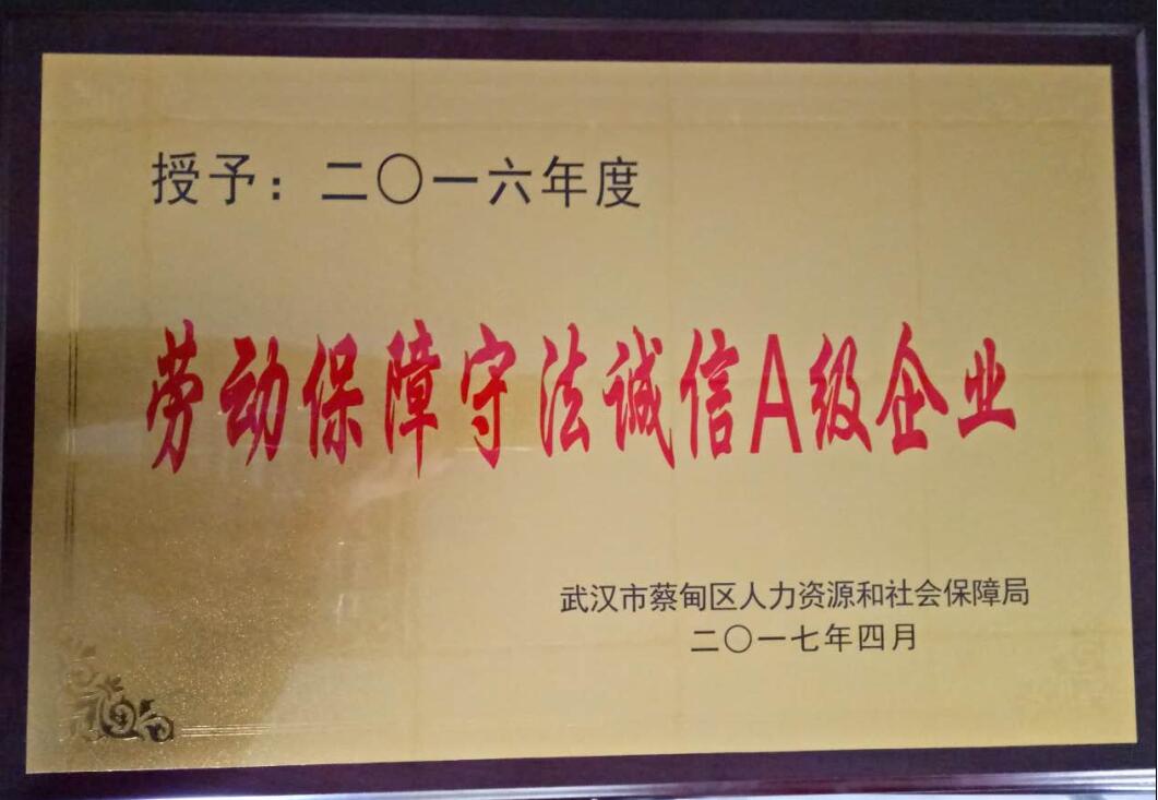 區(qū)勞動保障守法誠信評定小組從各企業(yè)人力資源流程、規(guī)章制度、執(zhí)行情況等方面進行實地走訪考察,經過綜合評定后,授予湖北大集建設集團“2016年度勞動保障守法誠信A級企業(yè)”榮譽稱號,人事行政部部長李海容榮獲區(qū)“優(yōu)秀人力資源干部”稱號!